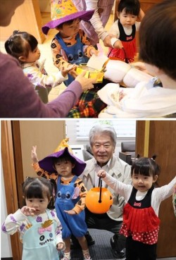10月30日(木)・31日(金)「事業所内保育施設マリアガーデン」でハロウィンの仮装パレードを行いました。園児は保護者が準備してくださった衣装を身につけて、園内の各事業所を周りました。 ご利用者の皆さんも仮装をした子どもたちに「かわいいね。また来てね!」と喜んでくださり、子どもたちもお菓子をもらいニコニコ笑顔でした。短い時間でしたがとても楽しい交流のひと時となりました。