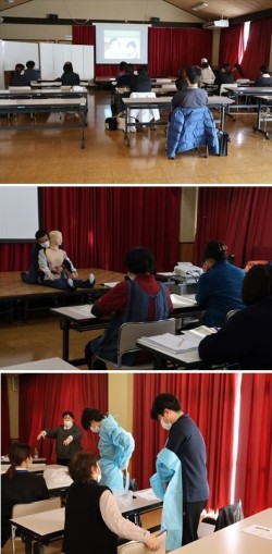 12月5日(金)と9日(火)の2日間、新任職員研修(後期)を行いました。今回は、昨年12月以降に入職した20名の職員が参加しました。 5日は、「人権学習」として中津市教育委員会の社会教育指導員の林史郎氏をお迎えし、人権やハラスメントについて理解を深めました。続いて「普通救命講習」では、中津市消防本部の職員の方に、応急手当の基礎や心肺蘇生の実技を丁寧に教えていただきました。 9日には、施設職員を講師として「ノーリフティングケア」と「感染症(ガウンテクニック)」の研修を実施し、日々の業務に必要な技術を学びました。 参加した皆さんが、今後の現場で知識と技術を生かして活躍されることを期待しています。