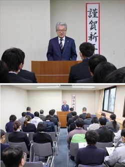 1月5日(月)「ミーティングルーム」で「仕事始め式」が行われました。 「仕事始め式」は約40名の職員が集合しました。 2026年の年頭にあたり冨永理事長から「あけましておめでとうございます。今年も責任と誇りをもって、福祉のまちづくりを推進してください。新しい1年、頑張りましょう。」と参加した職員に向けて挨拶を行いました。
