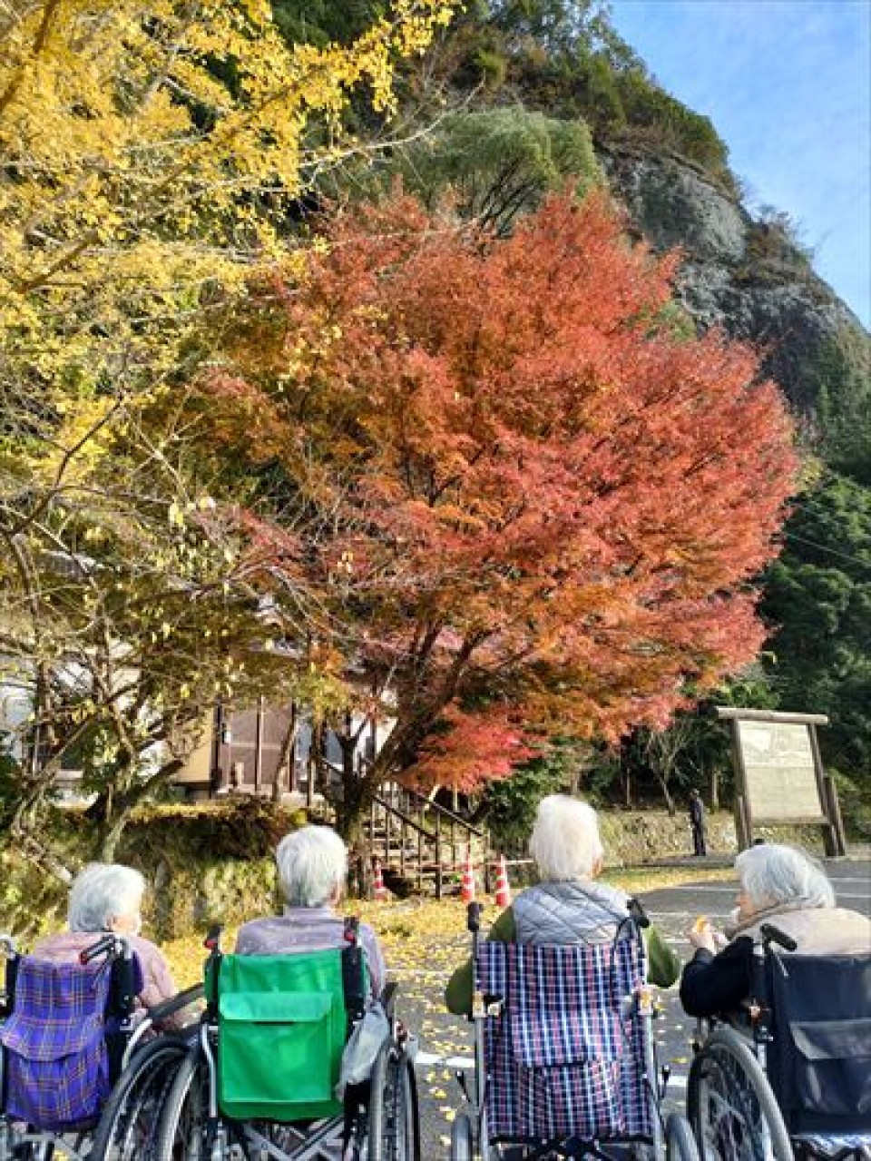 12月1日(月)「特別養護老人ホームいずみの園」で本耶馬渓へ紅葉ドライブに行ってきました。 当日は天気も良く、ゆっくりと過ごすことができました。ご利用者の皆様も楽しんでいただけたようで良かったです。