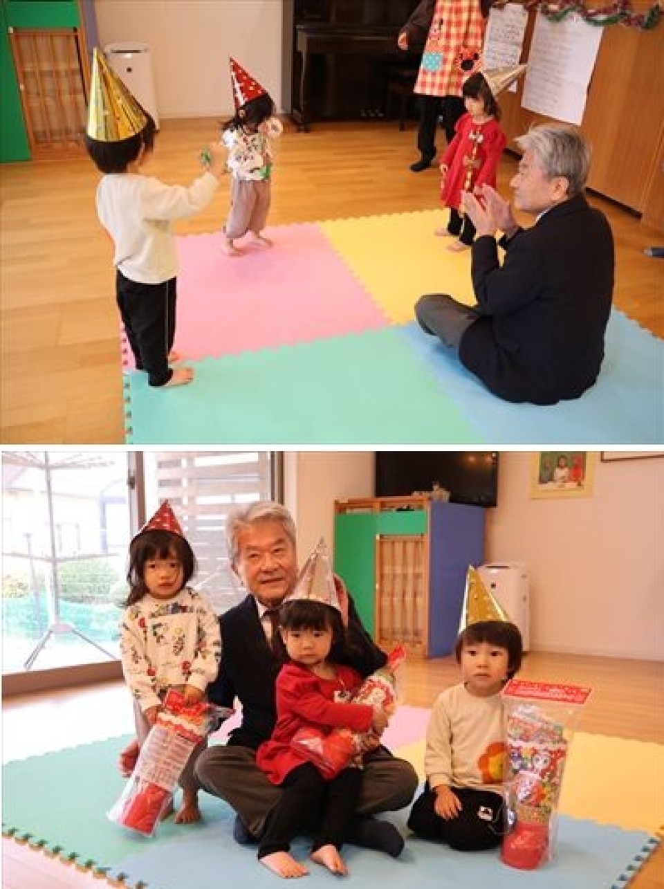 12月25日(水)事業所内保育施設「マリアガーデン」でクリスマスお楽しみ会を行いました。 子どもたちは鈴やカスタネットを使ってクリスマスの歌を歌いました。その後、理事長よりクリスマスプレゼントをいただき、みんな大喜びでした。 子どもたちもニコニコ笑顔で楽しいひと時となりました。