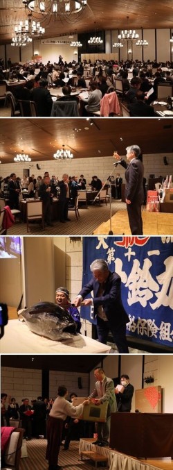 12月19日(金)19:00より中津駅近くにある「ヴィラルーチェ」にて「いずみ会(職員親睦会)」主催の『いずみの園忘年会』が行われ、205名が出席しました。 はじめに冨永理事長より挨拶がありました。その後、春の新任職員歓迎会以降の入職者が紹介され、次に一年間いずみの園の働きに大きく貢献された事業所に送られる「理事長賞」の表彰が行われ、デイサービスセンターふれあい館、ヘルパーステーションが受賞しました。 豊田在宅サービス事業部長の乾杯で宴会が始まり、マグロの解体ショーや韓国社会福祉法人道山視察研修の報告、最後には取引先企業の協力による大抽選会もあり大いに盛り上がり、楽しい時間を過ごすことができました。