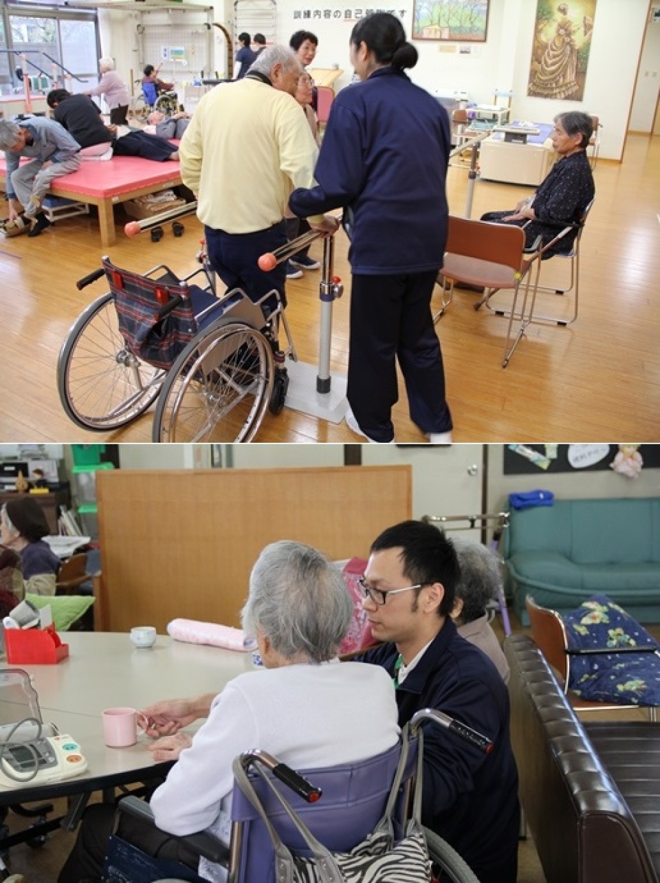 一般社団法人中津市医師会が運営する中津ファビオラ看護学校の看護科3年の実習の受け入れを行っています。 今年度は、6月3日から10月23日の期間に29名の方が実習されました。 10月21日(火)〜23日(木)に3名の方が、施設実習として「特別養護老人ホームいずみの園」、通所実習として「デイサービスセンターふれんど館」、「リハビリセンターいずみ」で、病院と施設のちがいや施設での高齢者の暮らしを学びました。 リハビリセンター(写真上)ではご利用者の機能訓練について、デイサービス(写真下)ではご利用者の健康管理やふれあいについてなどを実習しました。 現場体験を通じて、将来看護師として医療・介護の現場で働くときに、活かされることを願っております。 (研修センター)