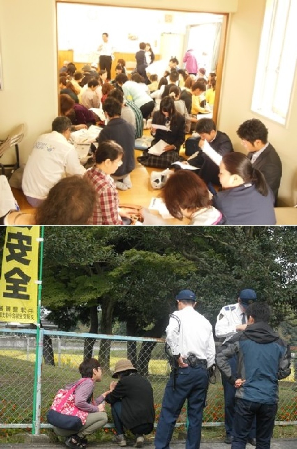 10月26日(日)、10時から12時まで、上如水団地集会所に於いて「第3回上如水団地高齢者徘徊模擬訓練」が、上如水団地自治会、中津市(介護長寿課)、中津市地域包括支援センターいずみの園の共催により行われました。 中津警察署・中津東交番の方にもご協力いただき、総勢約130名の方々が参加され、当園からも21名参加しました。 上如水団地自治会島田会長から、開会の挨拶があり、「中津市地域包括支援センターいずみの園」の伊藤課長より徘徊する人への声かけのポイントの説明のあと、徘徊役の方と捜索班としてグループに分かれ、認知症の人が行方不明になったことを想定して、「通報〜連絡〜捜索〜発見・保護」の情報伝達の流れと認知症を正しく理解し、本人の気持ちに配慮して声かけや見守り等を体験しました。 今後も地域の見守りネットワークが広がり、認知症への正しい理解が得られるように地域と連携していきます。 写真上:訓練の説明の様子 写真下:発見・保護の様子 (中津市地域包括支援センターいずみの園)