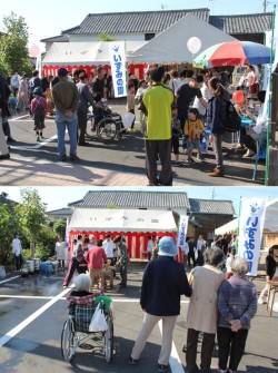 10月19日(日)、「いずみの園かきぜサポートセンター」の近くの蛎瀬、豊後町を通る通称楽一通りで、「楽市楽座・楽農文楽あきまつり」が開催され、当園も参加をしました。 雲一つない秋晴れの行楽日和のなか、地域の方11名、いずみの園職員36名の計47名の方々にお手伝いを頂き、杵と臼でついたつきたてのお餅の販売と、子どもさんへの風船の無料配布を行いました。(写真上) 地域の方と共に餅を丸め、もちつきでは、男性職員がかけ声と共に力強く杵を振り上げていました。 来られた方からは、「つきたてのお餅はこういう時にしか食べられないから。」と出来上がるのを待って頂くほど大好評でした。 「かきぜサポートセンター」のご利用者の方も見学に来られ、お祭りを通して交流を行うことが出来ました。(写真下) 今後も地域の行事に参加し、微力ながらまちづくりの一翼に加わっていきたいと思います。 お手伝いくださったすべての皆様、本当にありがとうございました。 (かきぜサポートセンター)