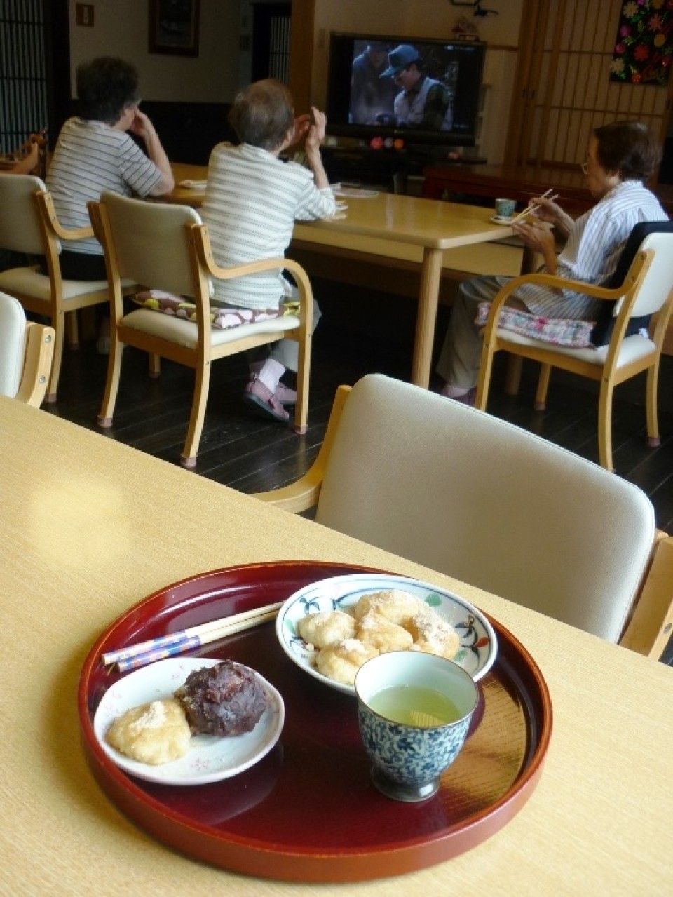 「かきぜグループホーム」では、「敬老の日」の9月15日に、盛大なお祝いということはできませんが、職員が心を込めておはぎを手作りしました。朝から準備して手間暇かけた甲斐あって、『めずらしいなぁ。』『よう出来ちょん。美味しいでぇ。』と喜んで召し上がられました。
