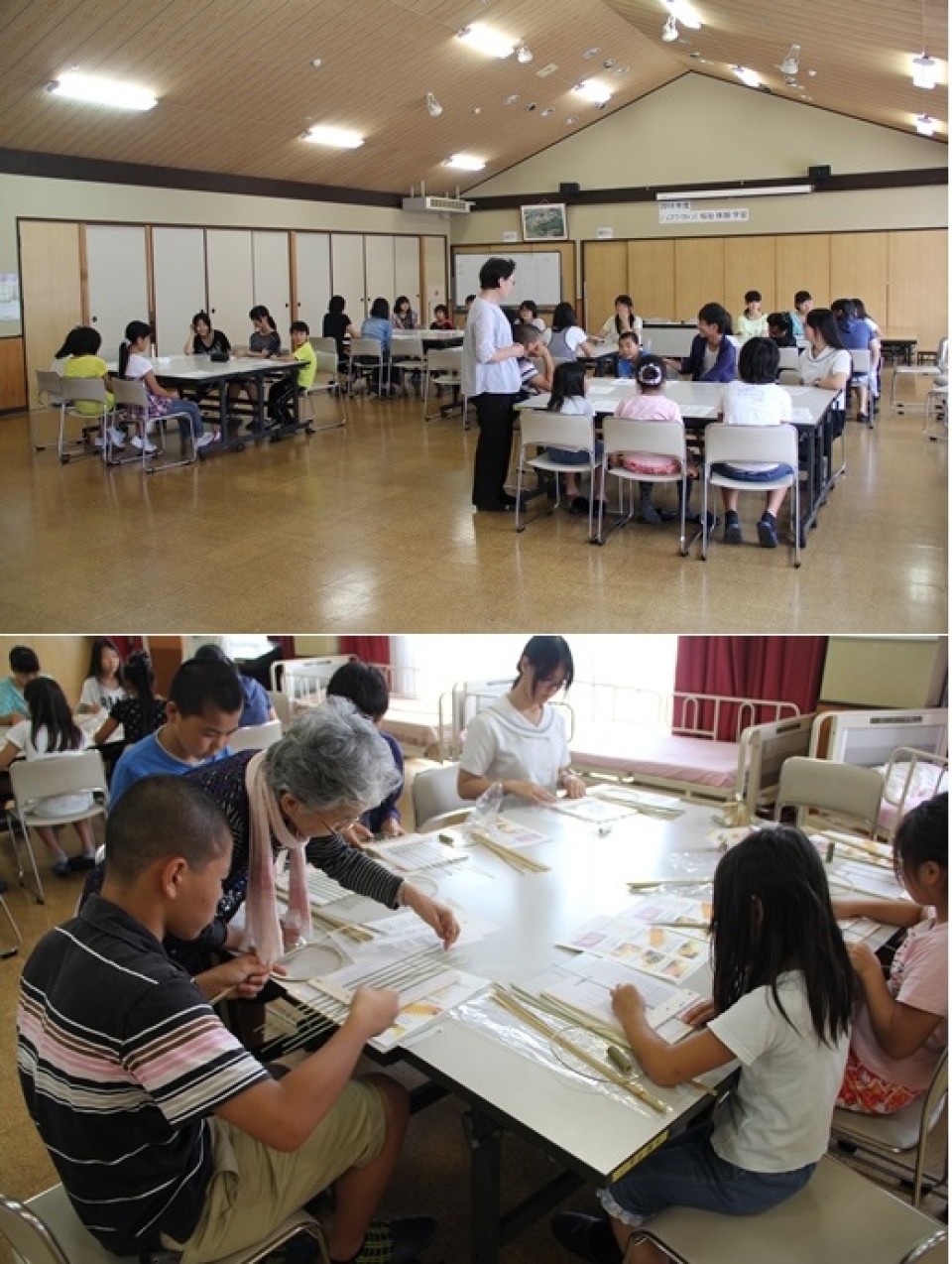 8月4日(月)、5日(火)、毎年恒例の『ジュニアワークキャンプ福祉体験学習』を1泊2日の日程で「地域交流ホームいずみ館」で行いました。(写真上) 参加者は、小学3年生から高校2年生の男女29名で、オリエンテーションの後、地域ボランティアの方の指導のもと、「昔の物づくり体験(竹工芸)」に挑戦しました。(写真下) その後、「特別養護老人ホームいずみの園」を見学して、食事介助や移動介助、話し相手になって、高齢者とふれあいました。 今年度も、夕食のカレー作りや車イス体験、レクレーション等を楽しく、無事に2日間の日程を終了することが出来ました。 「お年寄りの方とふれあいが出来て、良かった。」「また来年も来たいです。楽しかった。」と言って帰った生徒の声が今も心に残っています。 (研修センター)