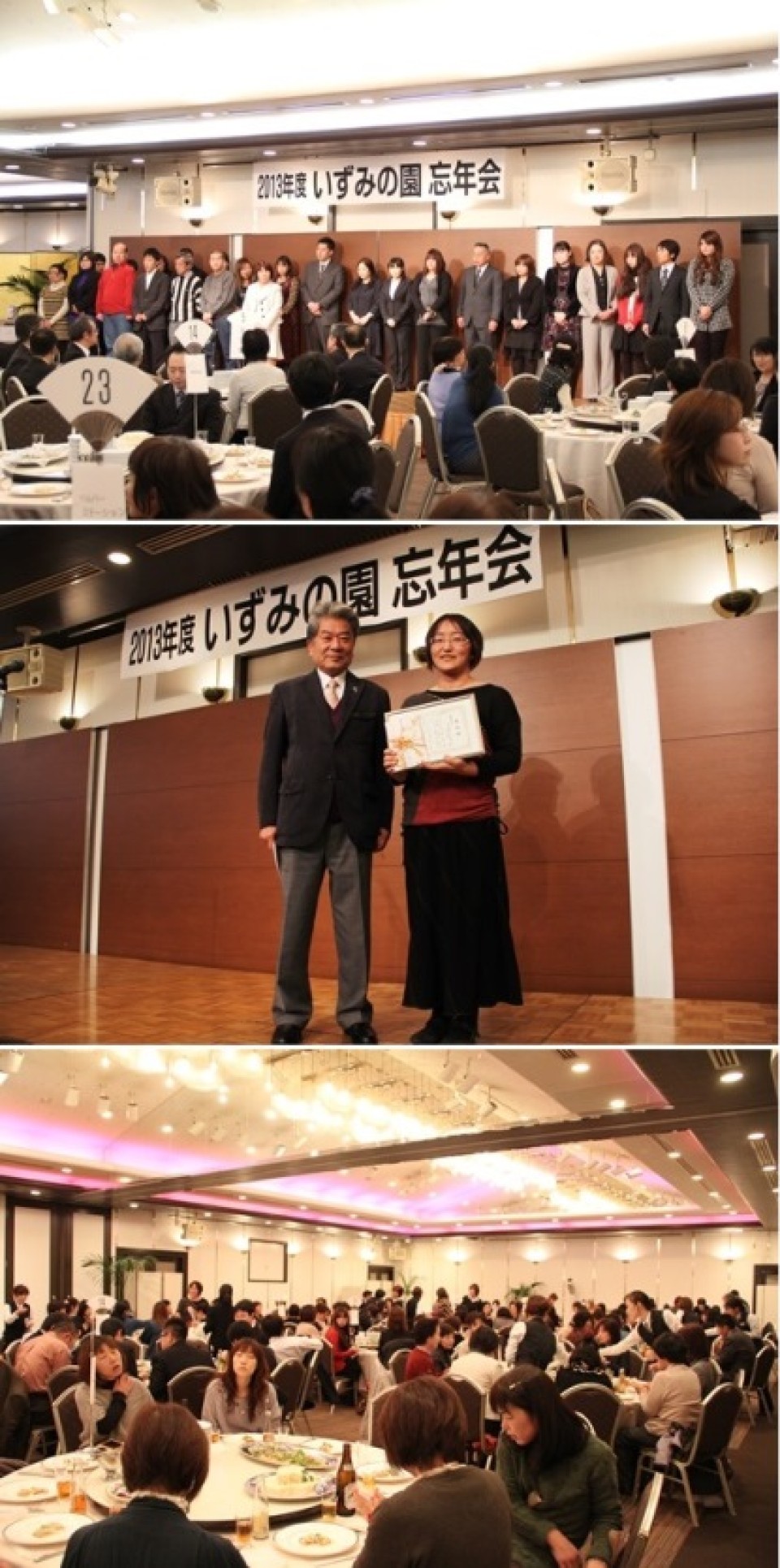 12月13日(金)19:00より中津市内のホテルにおいて、「いずみ会(職員親睦会)」主催の『いずみの園忘年会』が行われました。当日の出席者は258名で会場はいっぱいになりました。(写真下)