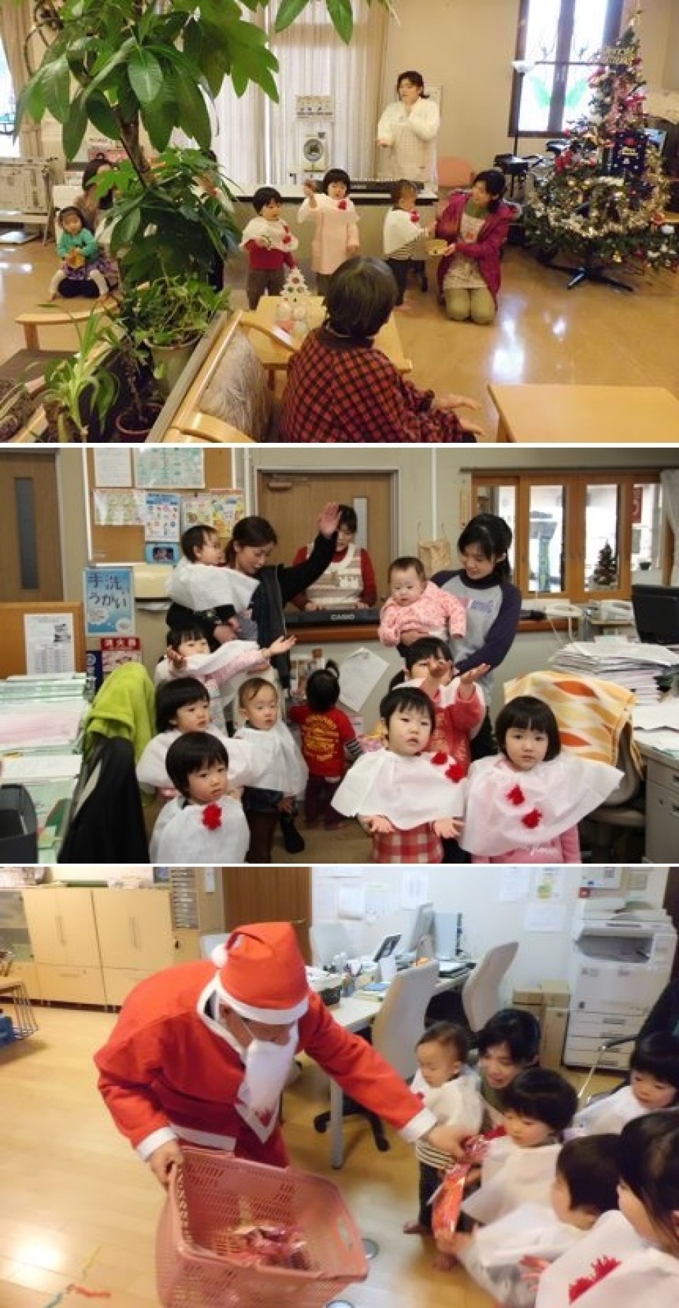終わったあとは多くの拍手や笑顔、『頑張ったね』『可愛いね』などの言葉をいただき、大満足の子どもたちです。帰るときにはバイバイしたり、タッチしたりして、また、サンタさんからのプレゼントもありました。
