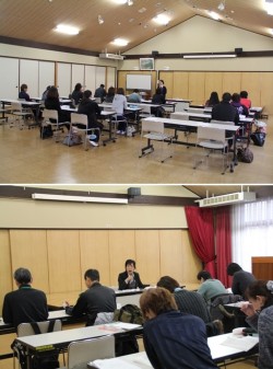 午前中に開講式、研修担当の職員によるオリエンテーション(写真上)が行われ、午後の時限目の講義では、皆さん熱心に受講されていました(写真下)。