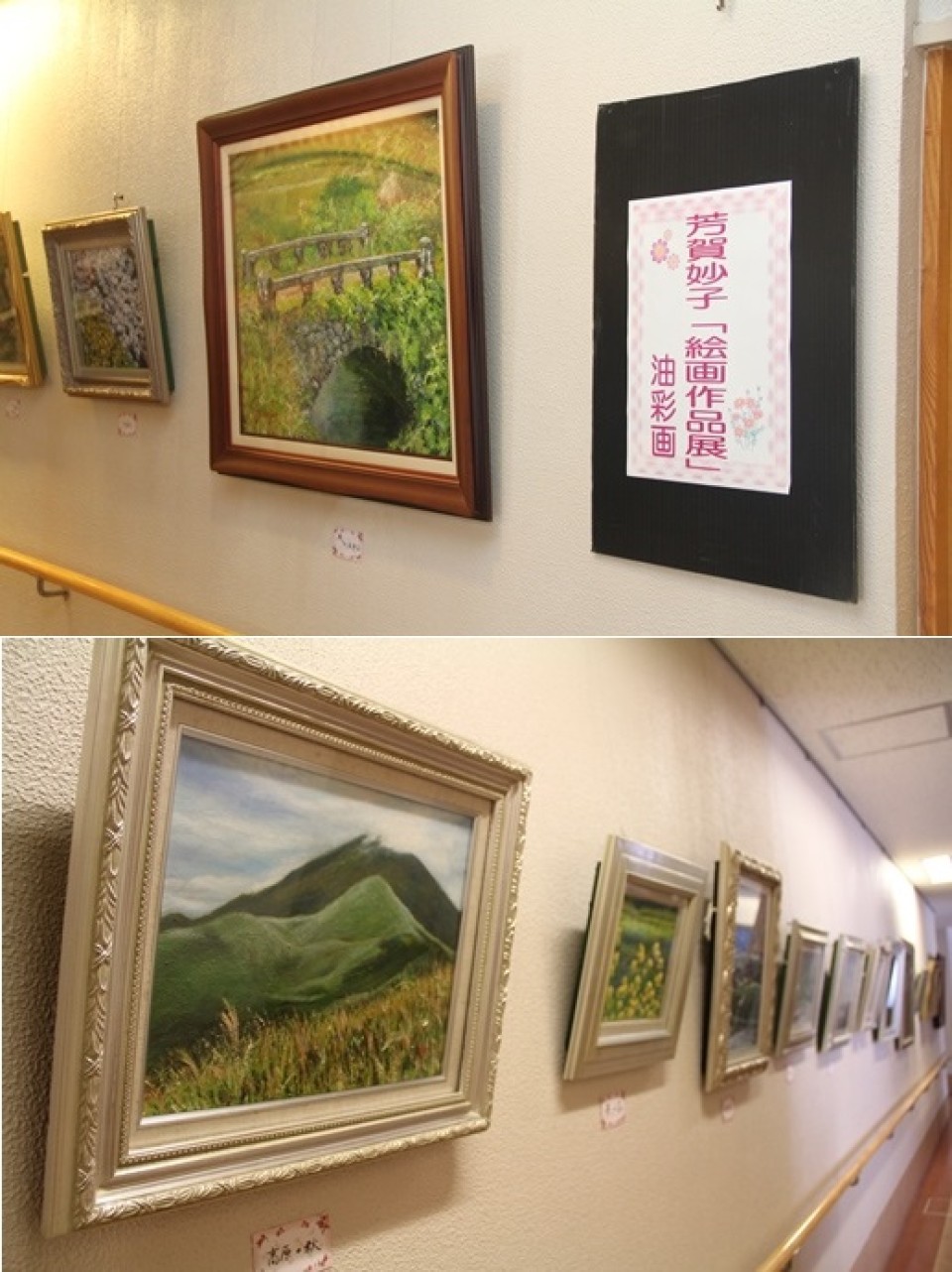 「ケアマンション聖愛ホーム」では毎月、地域の方や入居者の皆さんのご協力によりホール作品展を行っています。 11月のホール作品展は、『芳賀妙子油彩画作品展』です。 大分県宇佐市在住の芳賀さんは、「老後が長いだろうなぁ」と思い、60歳からデッサン教室で基礎から学ばれ、主に油彩画を描かれています。12年経ち昨年独り立ちされ、今回の「聖愛ホーム」でのホール作品展が、5回目の個展になるそうです。特に風景画を得意とされ、四季折々の風景画を中心に色彩豊かな力作が24点展示されています。 お近くにお越しの際は、力強く繊細なタッチの油絵をどうぞご覧ください。 (ケアマンション聖愛ホーム) |