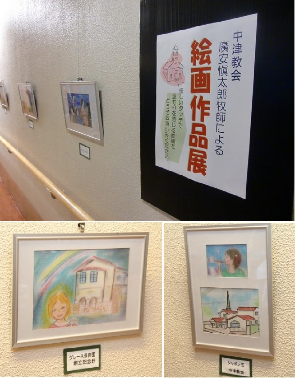 「聖愛ホーム」7月のホール作品展 中津教会廣安愼太郎牧師による「絵画作品展」を行っています。 2013.07.11