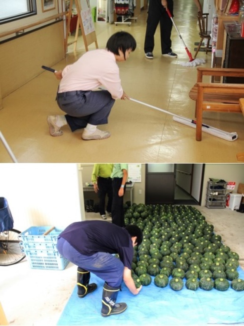 6月17日から28日までの間、大分県立中津支援学校の高等部の3名の生徒が、「ワークセンター シャローム」で職場体験実習を行っています。 A型事業所ではメンテナンス作業(写真上)、レストランのホール係を、B型事業所では 農作業(写真下)、クリーニング作業を体験しています。 「ワークセンターシャローム」には支援学校の卒業生もおり、実習生にとって、現場で働く先輩の姿を目にすることは、励みになっている様子が伺えます。 また、先輩であるシャローム利用者も後輩を前に張り切っており、双方に良い刺激 となっているようです。 (ワークセンターシャローム)