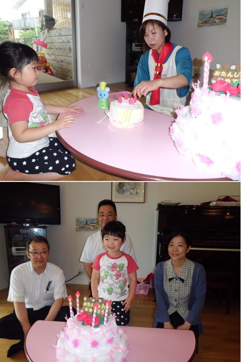 6月26日(水)、事業所内保育施設「マリアガーデン」で6月の誕生日会を行いました。 今月の誕生児は2名でしたが、1人は体調が悪く1名での誕生日会となりました。 今月はいつも「マリアガーデン」を支えて下さっている総務部の部長さん、課長さん、主任さんも6月が誕生月ということを聞き、サプライズで誕生日会に参加していただき、にぎやかな誕生日会となりました。(写真下) 本物そっくりのおいしそうなケーキを飾り、(写真上)お祝いの歌を歌ったり質問をしたりと楽しいひとときを過ごしました。 これからも子どもたちが神様や多くの人々に支えられ、感謝の気持ちを持ち素敵な誕生日が迎えられますように・・・。 (マリアガーデン)