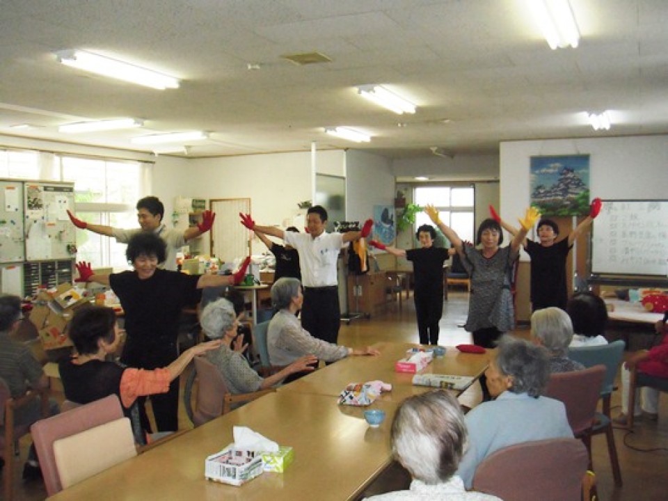 7月19日(木)に「デイサービスセンターかきぜ」にボランティアグループ「豊の船」の方々が来園されました。 「豊の船」の方々は、中津市内のボランティアグループで、定期的に「デイサービスかきぜ」に来られています。 今回も踊り、体操、歌などを披露して下さいました。オリジナルの振付の踊りを作られており、ご利用者の方も一緒に手を動かされていました。 1曲は職員も教えてもらいながら前で一緒に踊り、ご利用者の方も手を動かされ、喜ばれておりました。皆様笑顔で過ごされ、楽しいひと時を過ごしました。 (デイサービスセンターかきぜ) |