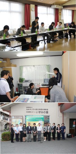 15日午前中、大分県立看護科学大学学長及び大分県福祉保健部課長はじめ7名の方が、当園に見学に来られました。 今年度から始まった「24時間定期巡回・随時対応型訪問介護看護」の指定を受けた当事業所の利用状況と地域看護を進めるうえでの課題について、第一線での実態を把握いただくものです。 当園から冨永理事長や担当部課長、看護師などが事業概要を説明の後、地域看護について長く学究と実践を積み重ねてこられ、この分野に造詣の深い村嶋学長(兼公立大学法人理事長)と1時間40分余の意見交換の機会を持ち、その後熱心に見学をされました。 いずみの園として2010年4月から「夜間対応型訪問介護」に取り組み、1年2ヵ月の国のモデル事業の指定を経て、本年度からの本格実施について同学長からも「これまでの多くの利用実績について、1年ごとの追跡調査や変化の契機を類型化し、この取組を発表するなどアウトカムを期待しています。」とのご意見をいただき、職員にとって今後の大きな励みとなりました。これからもご指導、ご助言をお願いいたします。 午後は大分県本庁、北部保健所の方が、当園の「中央サポートセンター」と「かきぜサポートセンター」を見学されました。お忙しい折、ありがとうございました。 (経営企画室:編集担当) |