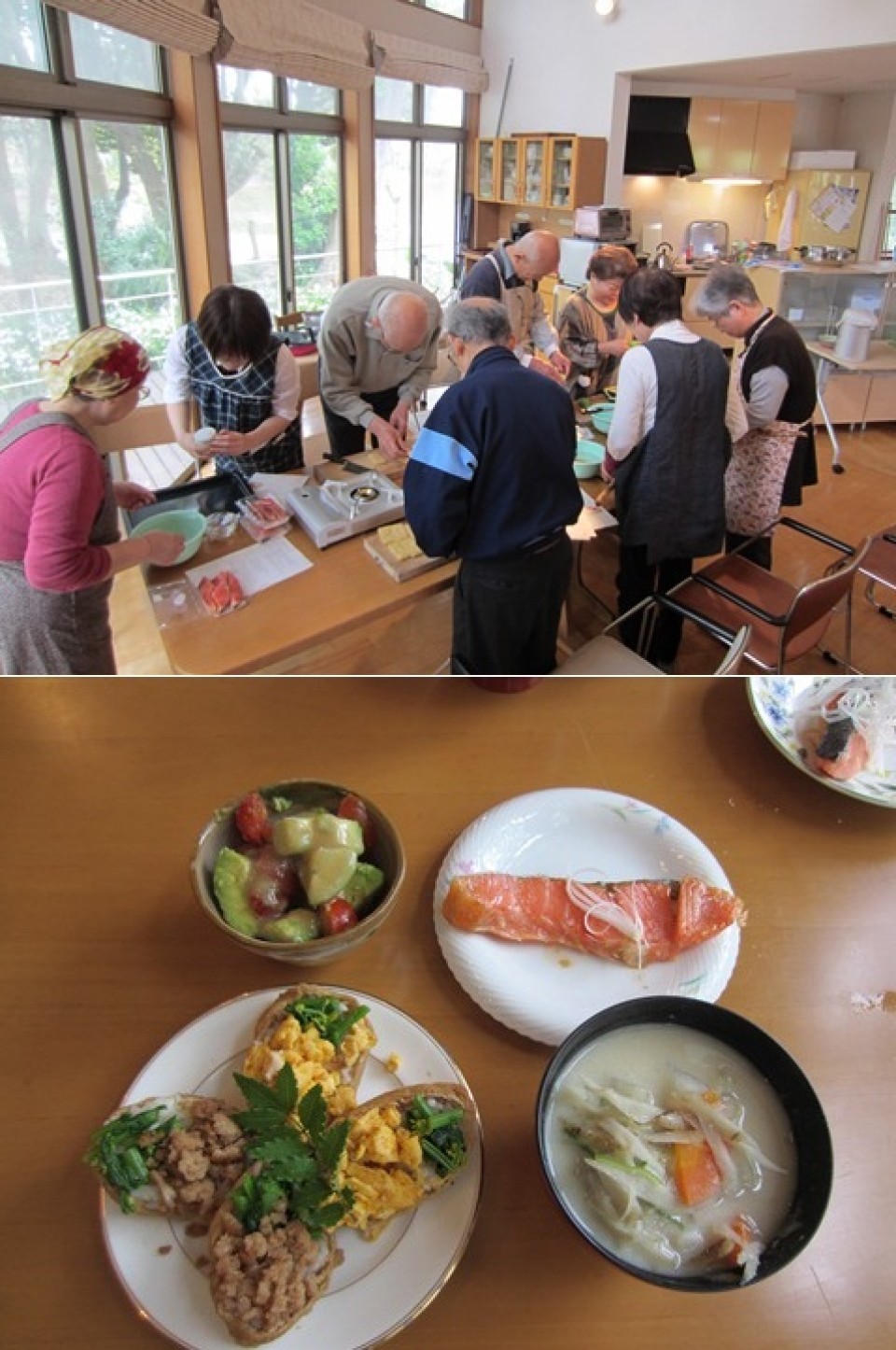 「シニアレジデンスいずみの森」では2か月に1度、入居者の方々とクッキング教室を行っています。 4月21日(土)のクッキング教室でのメニューは、2色いなり、鮭の塩麹蒸し、アボガドとトマトのゴマ和え、粕汁でした。 最初に栄養課の管理栄養士より、手順や塩麹の効能や使い方についての説明がありました。 2色いなりでは、ご飯をたくさん詰めすぎて、上に具がのせづらかったのですが、最終的にはきれいに出来上がりました。鮭は1時間ほど塩麹につけて、蒸し焼きにしました。 みんなで作った料理をおいしくいただき、楽しい一時を過ごしました。 (シニアレジデンスいずみの森) |