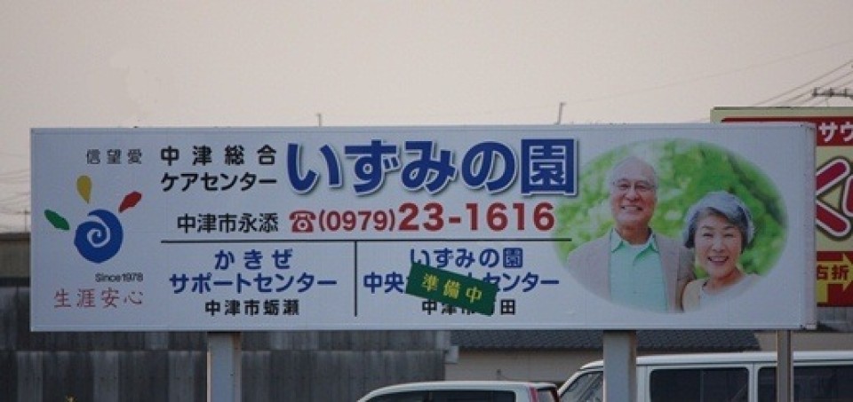 中津市相原(国道212号線沿い、中津市相原信号機より中津駅よりに約150m)に設置している看板の表示内容を刷新しました。 この看板は、横7m×縦1.8mの大看板です。今回は高齢者夫婦の写真を取り入れたデザインです。 付近を車で走行の際には、よそ見運転にらない程度にご覧ください。 (経営企画室:編集担当)