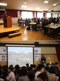3月14日(水)11:00より、いずみの園「地域交流ホームいずみ館」で、「第17回ボランティア交流会」が行われました。 「ボランティア交流会」は、いずみの園にボランティアとして携わって頂いている方々(2011年4月〜2012年2月の実員数1,426人)と、職員の交流を図るために毎年行われている会で、今年は53名のボランティアの方と24名の職員が参加して行われました。 まず当法人冨永理事長から「皆様にいろんな形で支えられて、いずみの園は成り立っています。これからもよろしくお願いいたします。」との挨拶(写真上)のあと、大分県ボランティア市民活動センター専門員村野淳子さんにより『「東日本大震災に思う」〜日々の備えは大丈夫か?』と題して講演がありました(写真下)。 その後、全員で会食を行い、交流を深めました。 ボランティアの皆さん、今後ともよろしくお願いいたします。 (経営企画室:編集担当) |