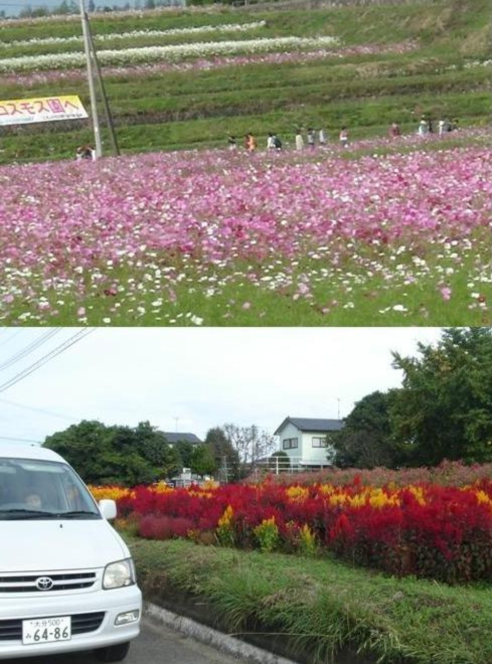 デイサービス「ふれあい館」でコスモス・ケイトウドライブに行きました。