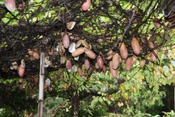 「いずみの森」のこのアケビは、これほど多くの実を付けるのも珍しく、以前大分県のテレビ放送局も取材に来たことがあるほどです。