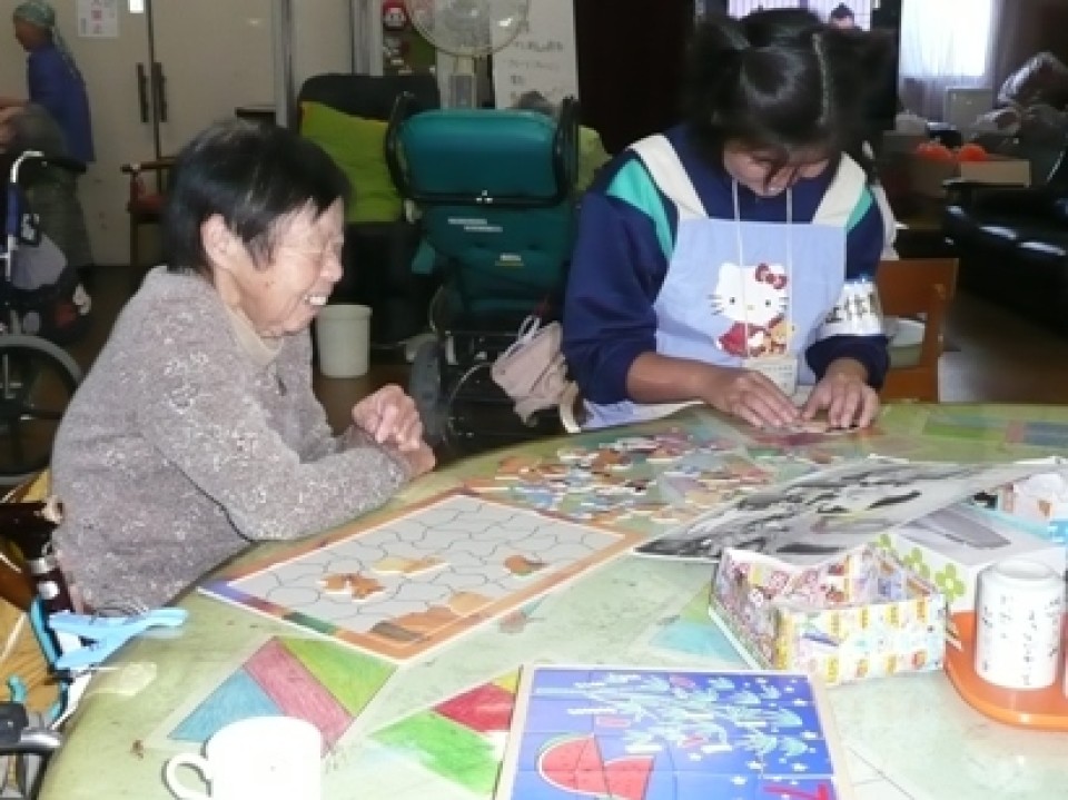 学校として宇佐からの移転後、初めての試みである支援学校生6人の体験実習を11月17日(月)〜28日(金)の間で行われています。 学校からは、将来に向けての就労希望の対象者が実習に参加されています。 内訳として、特別養護老人ホームに5人(高等部1年、2年生)、デイサービスに1人(高等部3年生)の生徒さんが体験に入りお年寄りとのふれあい中で自分たちに出来る仕事を学び、将来卒業した後に自己の働く事への一助となるよう、体験実習の活動を行っています。主な内容として配茶、配膳、下膳、草むしり、畳み拭き、窓拭き、洗濯物たたみ、炊事の後片付け、清掃、車椅子による移動補助、お年寄りとの会話など、一日様々な作業を通してお年寄りからの「ありがとう」の感謝の言葉をいただきながら、「働く楽しさ」や「人のために役に立つ嬉しさ」を感じながら、生き生きと活動する姿に逆に職員達も勇気付けられ、癒される場面も多く見受けられます。実習の生徒さん、利用者、職員の互いにとって温もりを感じ、そして良い相乗効果が生まれている実習になっています。