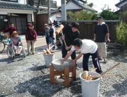 10月15日(土)、16日(日)の二日間、「いずみの園かきぜサポートセンター」の近くの蛎瀬、豊後町を通る通称楽一通りで、「楽一通り楽市楽座秋祭り」が開催され、当園も今年で8回目の参加をしました。 天候も心配されましたが、15日は焼きそばの販売と風船の無料配布、16日は地域の方にもお手伝いを頂き、もちつき(写真)、風船の無料配布を行いました。両日とも祭りにこられた方々に好評で、早い時間に完売する結果になりました。 地域の方と共に餅を丸め、地域の話やご自身の身体状況、介護の事などを話し、交流を行うことができました。蛎瀬地域の中で事業を行っており、地域の行事に参加し少しでもご協力ができるように今後も微力ながらまちづくりの一翼に加わっていきたいと思います。 お手伝いくださったすべての方この場をお借りして感謝申し上げます。ありがとうございました。 |