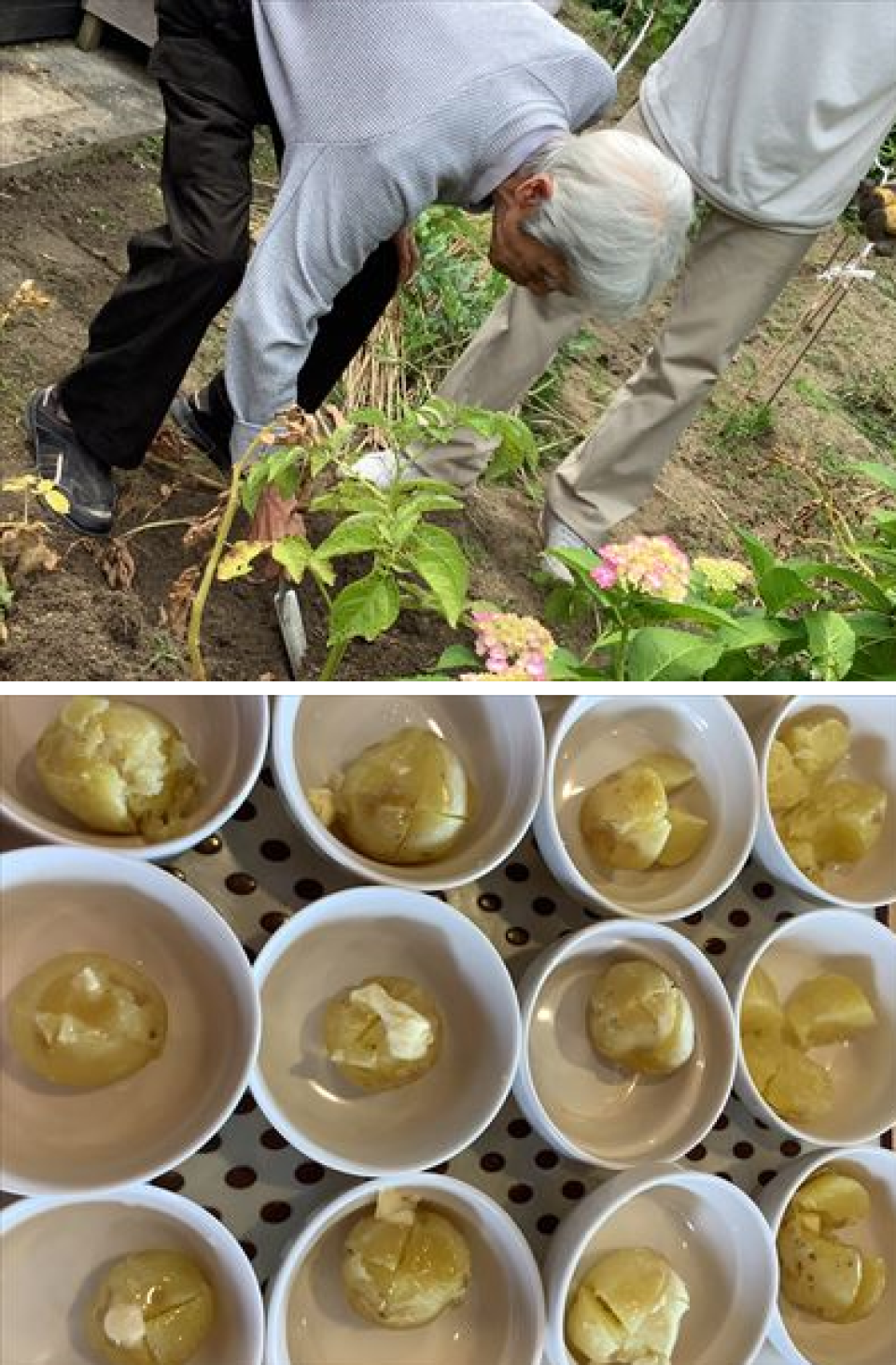 小規模多機能型居宅介護「寄り合いセンターいずみ」にある畑で2月に植えたじゃがいもがすくすく成長し、収穫祭を行いました。 ご利用者とワクワクしながら土を掘り、たくさんのじゃがいもを収穫することができました。大小さまざまなじゃがいも。さっそくふかし芋にして調理して、皆さんに召し上がって頂きました。美味しいと大好評でした。