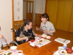 いずみの園では、特養入所者全員の方を対象に、2005年10月の改正介護保険法により制度化された栄養ケア・マネジメントを実施しています。栄養ケア・マネジメントとは、管理栄養士が特別養護老人ホームや老人保健施設等に入所している高齢者の方に対して、食べ物の好き嫌いや、かんだり、飲み込んだりといった食事の能力に応じて、個人毎のプログラムをつくって栄養改善を行うことです。 お一人おひとりの栄養状態をスクリーニング(選別)→アセスメント(評価)→計画書作成→モニタリング(観察し記録する)を行います。高齢者にとって食事は、生活または生きる上での大きな楽しみの一つです。栄養管理は、栄養士一人の力で出来るものではありません。他職種と連携し、ご利用者が「生き生きと生活が出来る」ように支援しています。
