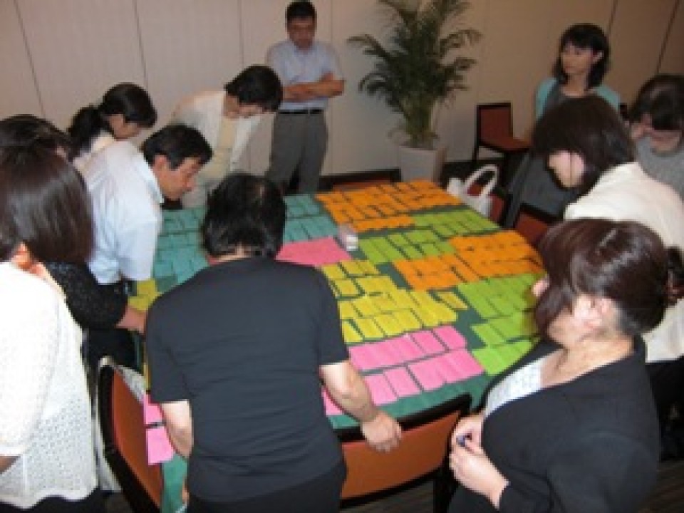 7月9日(土)にいずみの園の職員のうち役職者56人 がグランプラザ中津ホテルに集まって研修会を行いました。ブレインスターというコンサルタント会社から3名の先生が来られ、グループワークを中心にコンピテンシー(仕事ができる人の行動特性)について学びました。 管理者として何が大切かを学び、自分の行動を変えて行こうという内容でした。真剣に資料を見つめながらアイデアを考えたり、皆で話し合ってグループ(7〜8人)の方針を決定したり、大変でしたが、楽しみながら勉強できました。また、他の人がどういうことを大切と考えているのか知る機会となりました。 |