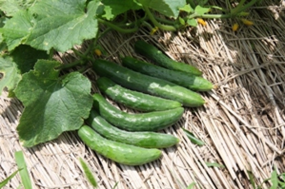 シニアレジデンスいずみの森には畑があり、いろんな野菜や果物を栽培しています。園芸や野菜作りに詳しいいずみの森の職員が、手塩にかけてキュウリ、トマト、かぼちゃ、ナスビ、ピーマン、トウモロコシ、さつま芋などを育てています。その中で今、夏野菜のキュウリが収穫の真っ最中です。
