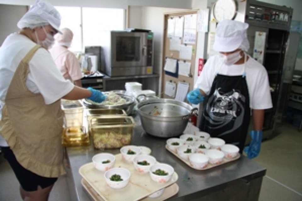 4名の生徒が2週間にわたり厨房での盛り付けや車の洗車、窓ふき、高齢者介助の手伝いの実習に取り組んでいます。高齢者の方からも受け入れられ、実習だけでなく、一緒にオセロをしたり、七夕飾り作りの準備など新しい経験をしています。当園はこれからもいろんな場面で中津校の活動に協力していきます。