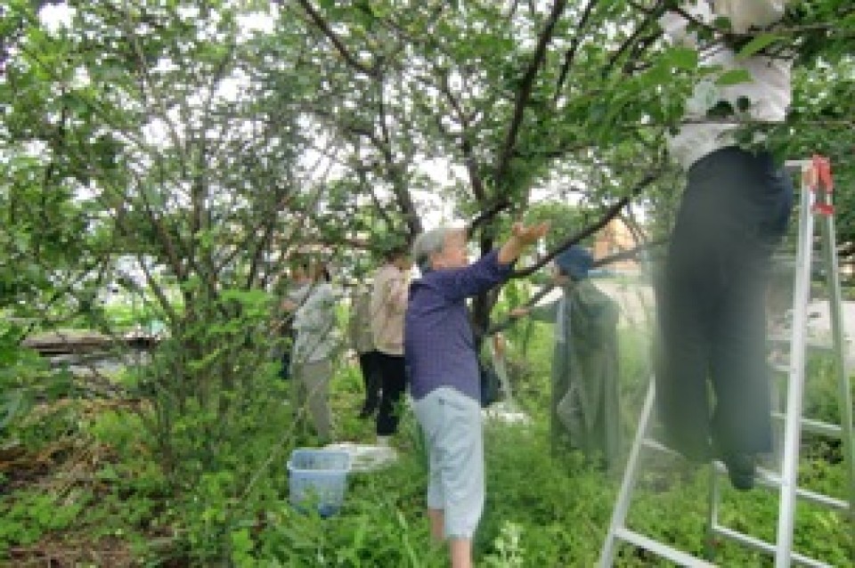 6月20日、梅雨のわずかな晴れ間に、聖愛ホーム入居者のみなさんに声をかけ梅もぎをしました。