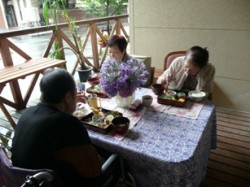 6月27日(月)ヨハネ館3番地のご利用者が、共有スペースのウッドデッキに出て昼食をされました。