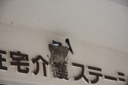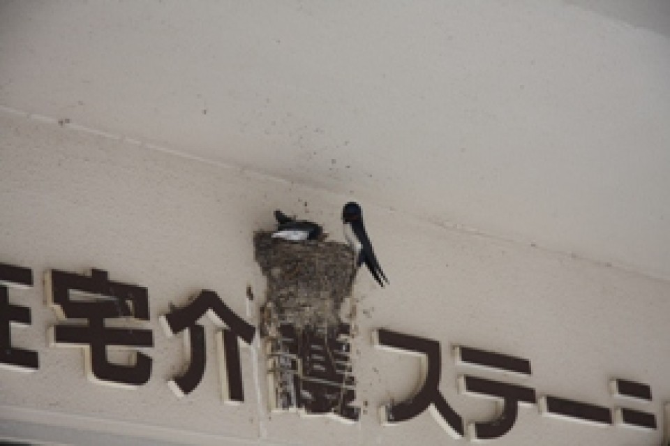 今年も在宅介護ステーション入口にツバメが巣を作りました。3匹の雛が生まれ、親鳥からの餌を口を大きく開けている光景を職員で見守っていました。そうして6月15日、無事に巣立ちました。 |