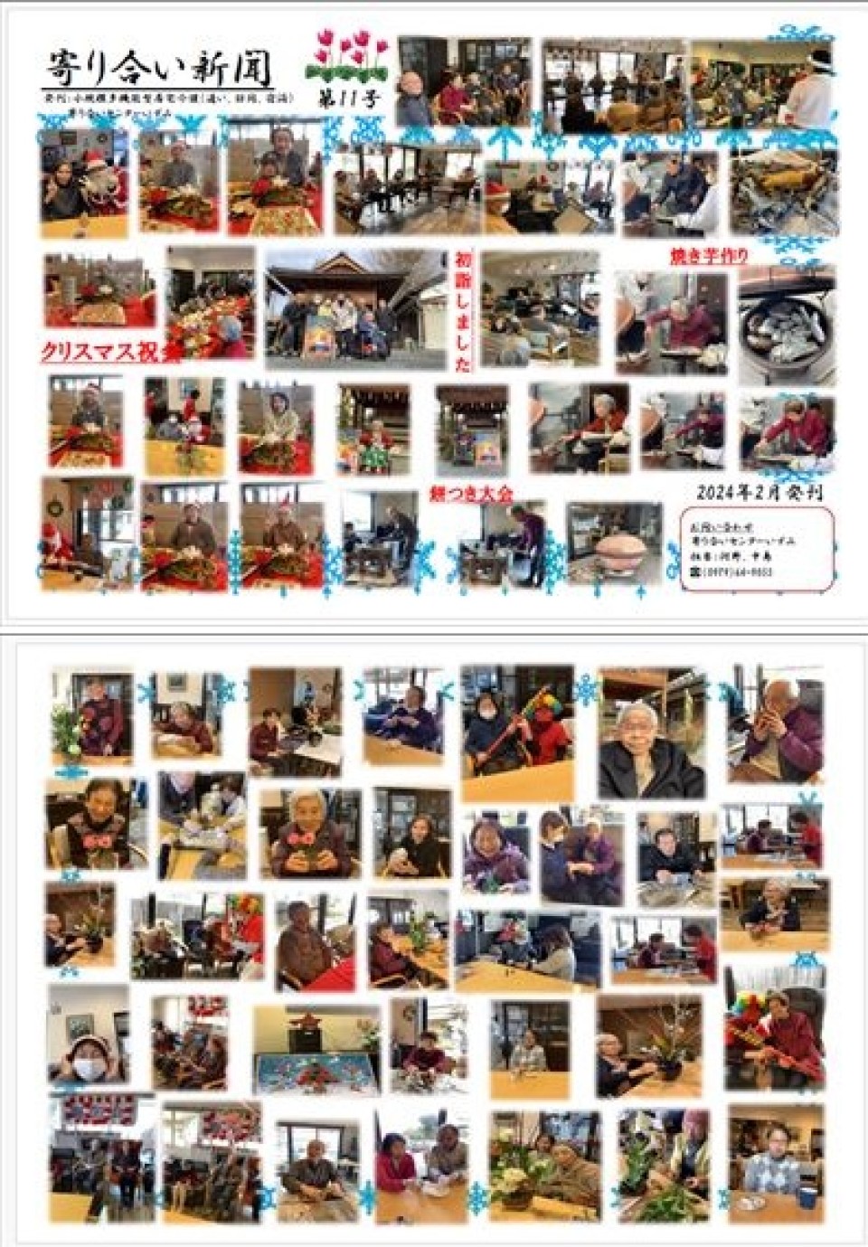 「かきぜサポートセンター」内にある小規模多機能型居宅介護「寄り合いセンターいずみ」では年4回『寄り合い新聞』を発行しており、今回冬号が完成しました。行事や日常風景といった「寄り合いセンターいずみ」の魅力がぎっしり載っています。 インスタグラム、Facebookにも投稿していますのでご覧ください。
