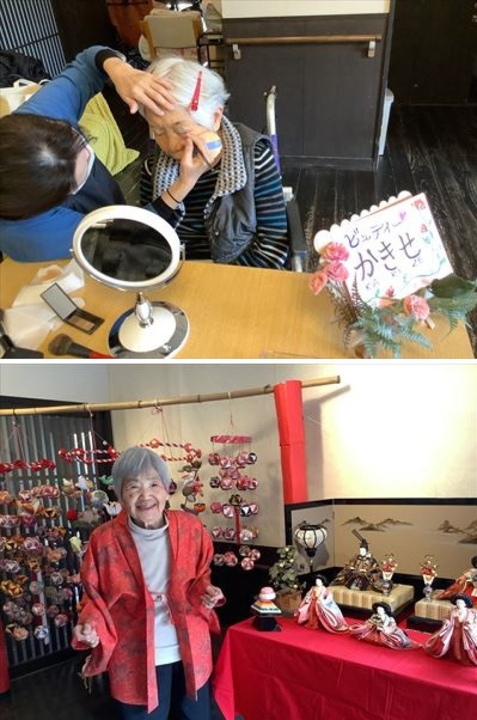 「かきぜグループホーム」でひな祭りの行事にビューティーケアを行いました。 2024.03.13