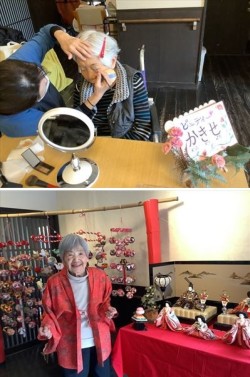 3月4日(月)に中津市蛎瀬にある「かきぜグループホーム」でひな祭りの行事にビューティーケアを行いました。 美容部員の方をお招き、ご利用者の皆様にメイクをしていただきました。恥ずかしがる方や喜ばれる方がおられ笑い声が絶えませんでした。昔を思い出され、ご自分でメイクをされる方もいました。 メイク後、イキイキとした表情で着物の羽織を着て記念写真を撮りました。皆様お雛様に負けないくらい綺麗でした。