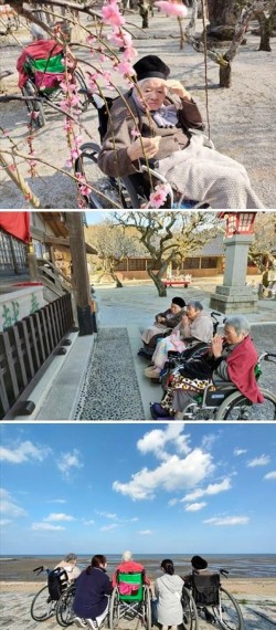 「特別養護老人ホームいずみの園」で福岡県築上町にある綱敷天満宮へ梅を観に行きました。 天気も良く、綺麗に咲いている梅の花を観ることができました。その後に浜の宮海岸へ行き、海を眺め、ゆっくりと過ごすことができました。