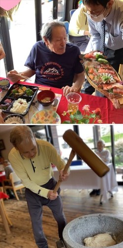 午後からは、餅つき大会を行い、つきたての紅白餅を召し上がっていただきました。皆様「おいしいね」と喜ばれ、楽しいひとときを過ごされました。