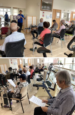 「ふるさと」「荒城の月」など、秋の風情を感じる名曲が響き渡り、ご利用者より「きれいな音ね」「懐かしい」といった声も。 一緒に口ずさむご利用者の姿に、心温まるひとときとなりました。