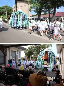 8月22日(金)、いずみの園の近くにある八幡鶴市神社で行われる鶴市花傘鉾祭の永添地区の花傘鉾がいずみの園に来られました。 「鶴市花傘鉾祭事」は昔、山国川(一級河川)の井堰を完成させるために人柱となったお鶴と市太郎親子の霊を慰め、五穀豊穣を願うお祭りで、中津市の夏の恒例行事となっており、今年は8月23日、24日で行われました。 いずみの園でも、毎年、永添地区の花傘鉾の飾りのお花をご利用者と職員で作り、協力させていただいています。今年は1,300個のお花を作りました。 当日は特養のご利用者も外に出て、子どもたちによる厳かなお囃子の音を聴き、ご利用者も大変喜ばれていました。 (特別養護老人ホームいずみの園)