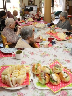 「特別養護老人ホームいずみの園」では、ユニットごとに毎月行事の企画を行っています。 5月20日はヨハネ館(新型特養)の1番地で、昼食のサンドイッチ作りをご利用者の方と共に行いました。お昼時に行ったということもあって、みなさん完成が待ち遠しい様子でした。 サンドイッチを食されているご利用者からは「美味しいね」と、大変喜んでいただけました。 「特別養護老人ホームいずみの園」では、おやつ作りや誕生日のお祝いなど、ご利用者の楽しいひと時作りをさせていただいています。 (特養事業部:介護課)