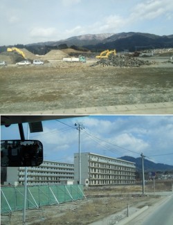 2月19日(火)から21日(木)にかけて行われた大分県社会福祉施設経営者協議会の東日本大震災被災施設視察に、いずみの園から経営企画室の末延主任が参加しました。 今回の視察は、大分県でも東南海・南海地震による地震、津波の被害想定は過去の予想を遙かに超えており、この被害想定に鑑み、施設においても十分な災害対応の必要があり、東日本大震災で被災した施設への訪問(視察)により、施設における早期の災害対応へ役立てるために行われ、11法人18名と事務局1名の計19名が参加しました。 今回は津波の甚大な被害のあった宮城県名取市の特養「うらやす」の視察と、宮城県気仙沼市のケアハウス「ソレイユの丘」、岩手県陸前高田市の特養「高寿園」へ訪問、最後に東北厚生局と情報交換を行い、被災地の現状と被害の大きさを目の当たりにしました。 (写真上:岩手県陸前高田市の海岸近くの復興の様子。写真下:岩手県陸前高田市の海岸近くの住宅。4階まで窓ガラスがが割れ、ベランダが破損している。まだ手付かずの状態) (経営企画室:編集担当)