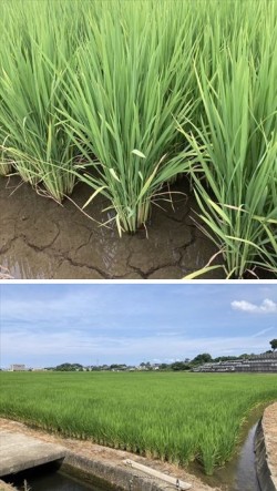 「ワークセンターシャローム」(就労継続支援B型)で植えた稲が成長しています。 6月に8反の田んぼに植えた稲が順調に育っています。10月中旬ごろ稲刈りの予定です。台風の発生も増え始めていますが、無事に成長してほしいです。 写真撮影:8月20日時点