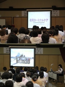 5月21日(月)18:30から地域交流ホームいずみ館で、5月の園内研修があり、127人の当園職員が参加しました。 今回は2部構成で、1部は「在宅ターミナルケア」についてのビデオ学習で、現在、在宅でのターミナルケア(終末期ケア・緩和ケア)が多くなってきていますが、このケアについての基本的な考え方や利用者、家族との向き合い方などを、施設内職員で共有するためのビデオ学習でした。 2部は「介護保険サービスセンター」の東主任による「豪州福祉事情について」と題して、本年2月4日から11日にかけてソウエルクラブ海外研修で、オーストラリアでの幼稚園と高齢者福祉施設、ニュージーランドでの障がい者支援施設と高齢者福祉施設を視察した現状報告でした。 視察した感想は、「オーストラリアの社会保障制度、ケアについては、先駆的な取り組みがすでに浸透している。しかし日本でも、科学的、理論的根拠に基づいたケアが追及され、決して劣るものではない。」ということでした。 (研修委員会) |