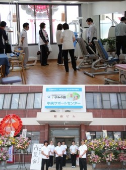 「いずみの園」の新しいデイサービスセンター「いずみの園中央サポートセンター」が、6月1日に国道212号線沿いの中津市万田にオープンし、事業開始します。 定員25名の2階建ての建物で、機能訓練機器を取り揃えており、作業療法士による機能訓練が行えます。また、その他にも趣味や健康、トレーニングなど、ご自分で選べるプログラムも用意しています。さらに、介護認定を受けていない方の利用できる時間もあります。(若干名) このデイサービスのオープンに当たり、内覧会が5月26日(土)・27日(日)・28日(月)の3日間行われました。この内覧会でご高齢者の方やそのご家族の方、一般の方、居宅介護支援事業所の方など162名の方が訪れ、担当職員が案内、説明をしました。(写真上) たくさんのご来場、ありがとうございました。 (写真下は中央サポートセンター正面玄関と担当職員) (中央サポートセンター) |