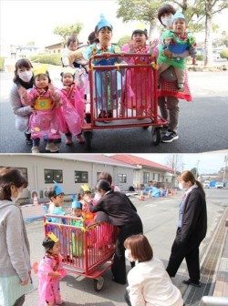 3月1日(金)事業所内保育施設「マリアガーデン」で、ひな祭りの行事を行いました。 子どもたちはお雛様とお内裏様になり、いずみの園の敷地を散歩しました。 ご利用者や職員より「かわいいね〜」と声を掛けていただき、子どもたちも嬉しそうに手を振っていました。