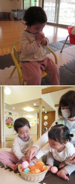 2月3日(金)事業内保育施設「マリアガーデン」では節分の豆まきを行いました。 段ボールで作った赤鬼にみんなで元気に楽しく過ごせるように豆を投げました。
